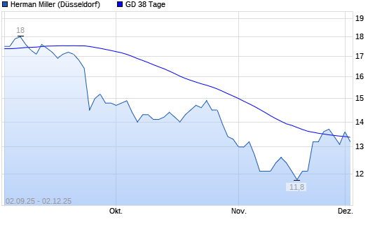 Mit dem Rücksetzer auf 13,30 EUR hat die Herman Miller-Aktie am 01.12.2025 die 38-Tage-Linie nach unten gekreuzt.