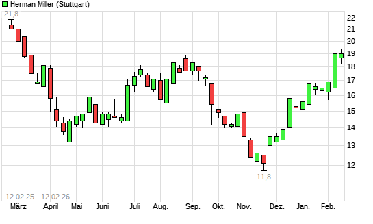 Mit dem Anstieg auf 18,80 EUR hat die Herman Miller-Aktie (ISIN US6005441000) am 11.02.2026 ein neues 6-Monats-Hoch erreicht und damit den Kurs vom 25.08.2025 eingestellt.Die Herman Miller-Aktie ...weiterlesen