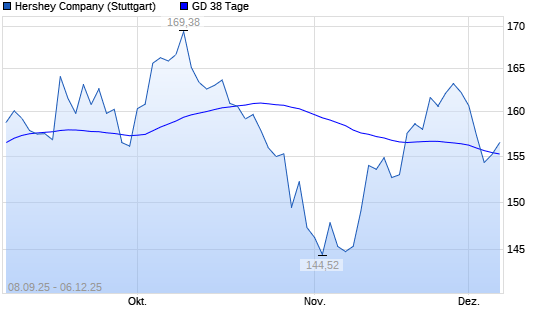 Mit dem Anstieg auf 155,46 EUR hat die Hershey Company-Aktie am 05.12.2025 die 38-Tage-Linie nach oben gekreuzt.