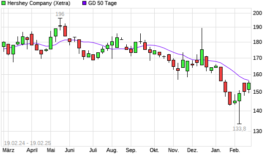 Mit dem Anstieg auf 156,16 EUR hat die Hershey Company-Aktie am 18.02.2025 die 50-Tage-Linie nach oben gekreuzt.
