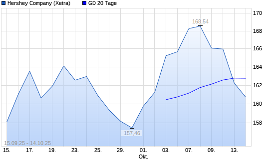Mit dem Rücksetzer auf 161,56 EUR hat die Hershey Company-Aktie am 13.10.2025 die 20-Tage-Linie nach unten gekreuzt.