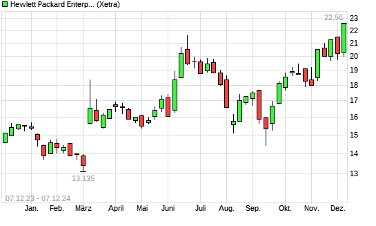 Mit dem Anstieg auf 22,79 EUR hat die Hewlett Packard Enterprise-Aktie (ISIN US42824C1099) am 06.12.2024 ein neues All-Time-High erreicht und damit den Kurs vom 25.11.2024 eingestellt.