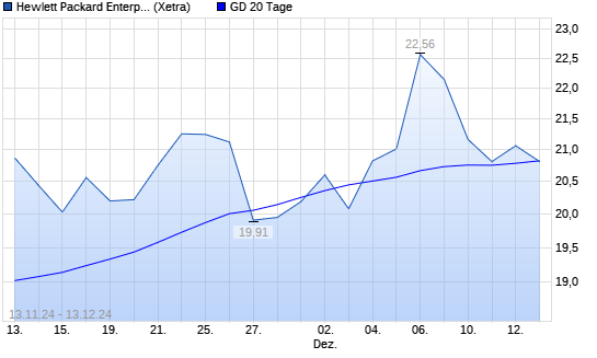 Mit dem Anstieg auf 20,70 EUR hat die Hewlett Packard Enterprise-Aktie am 12.12.2024 die 20-Tage-Linie nach oben gekreuzt.