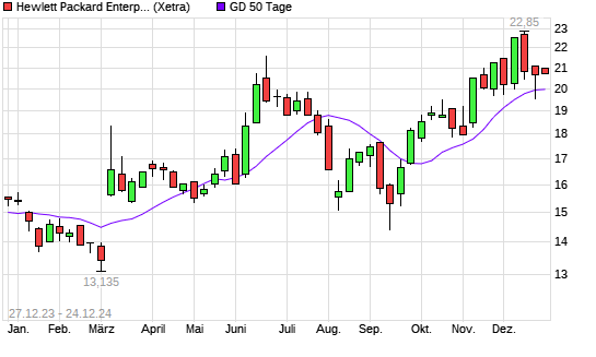 Mit dem Anstieg auf 20,66 EUR hat die Hewlett Packard Enterprise-Aktie am 23.12.2024 die 50-Tage-Linie nach oben gekreuzt.