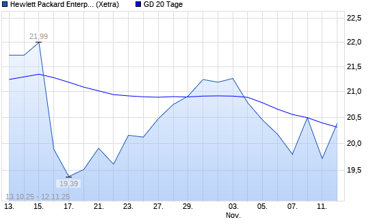 Mit dem Rücksetzer auf 19,97 EUR hat die Hewlett Packard Enterprise-Aktie am 11.11.2025 die 20-Tage-Linie nach unten gekreuzt.