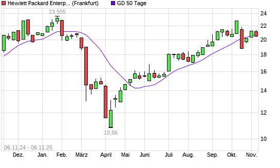 Mit dem Rücksetzer auf 20,40 EUR hat die Hewlett Packard Enterprise-Aktie am 05.11.2025 die 50-Tage-Linie nach unten gekreuzt.