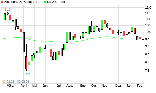 Mit dem Anstieg auf 9,59 EUR hat die Hexagon-Aktie am 02.02.2026 die 200-Tage-Linie nach oben gekreuzt.