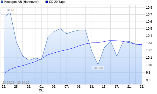 Mit dem Rücksetzer auf 10,15 EUR hat die Hexagon-Aktie am 22.10.2025 die 20-Tage-Linie nach unten gekreuzt.