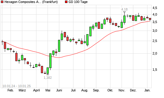 Mit dem Rücksetzer auf 3,56 EUR hat die Hexagon Composites-Aktie am 09.01.2025 die 100-Tage-Linie nach unten gekreuzt.