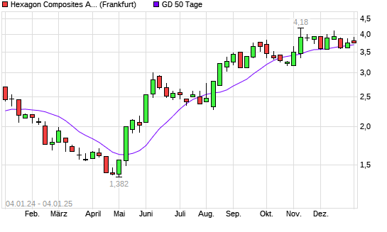Mit dem Rücksetzer auf 3,75 EUR hat die Hexagon Composites-Aktie am 03.01.2025 die 50-Tage-Linie nach unten gekreuzt.