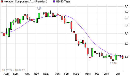 Mit dem Rücksetzer auf 1,44 EUR hat die Hexagon Composites-Aktie am 17.07.2025 die 50-Tage-Linie nach unten gekreuzt.