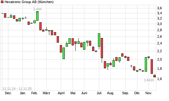 Mit dem Rücksetzer auf 1,65 EUR hat die Hexatronic Group-Aktie (ISIN SE0018040677) am 10.11.2025 ein neues 12-Monats-Tief erreicht und damit den Kurs vom 07.11.2025 eingestellt.