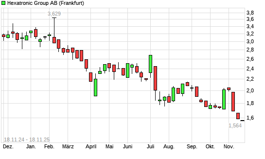 Mit dem Rücksetzer auf 1,56 EUR hat die Hexatronic Group-Aktie (ISIN SE0018040677) am 17.11.2025 ein neues 12-Monats-Tief erreicht und damit den Kurs vom 14.11.2025 eingestellt.