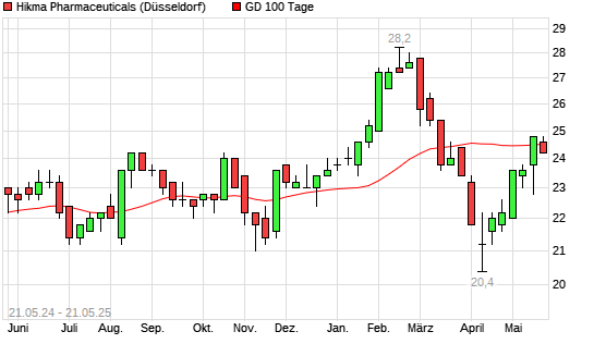 Mit dem Anstieg auf 24,80 EUR hat die Hikma Pharmaceuticals-Aktie am 20.05.2025 die 100-Tage-Linie nach oben gekreuzt.