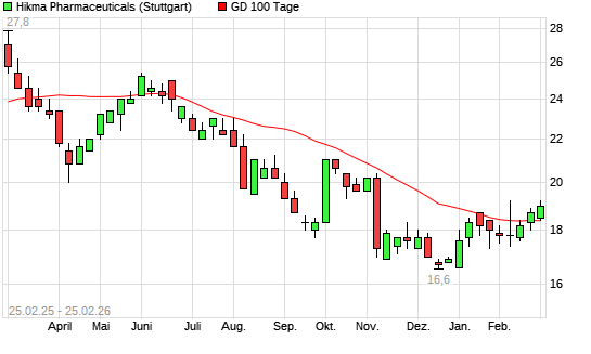 Mit dem Anstieg auf 18,90 EUR hat die Hikma Pharmaceuticals-Aktie am 24.02.2026 die 100-Tage-Linie nach oben gekreuzt.