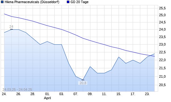 Mit dem Anstieg auf 22,40 EUR hat die Hikma Pharmaceuticals-Aktie am 23.04.2025 die 20-Tage-Linie nach oben gekreuzt.