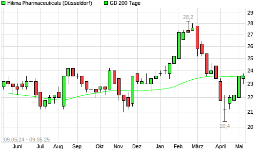 Mit dem Anstieg auf 24,00 EUR hat die Hikma Pharmaceuticals-Aktie am 08.05.2025 die 200-Tage-Linie nach oben gekreuzt.