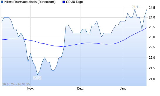 Mit dem Anstieg auf 24,20 EUR hat die Hikma Pharmaceuticals-Aktie am 15.01.2025 die 38-Tage-Linie nach oben gekreuzt.