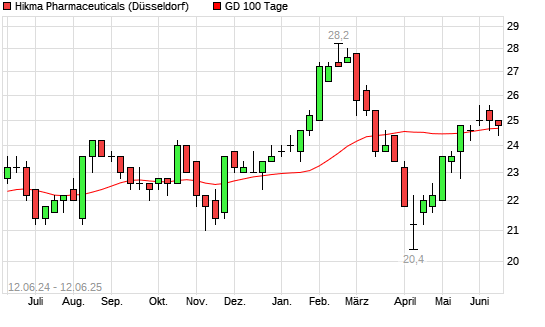 Mit dem Rücksetzer auf 24,60 EUR hat die Hikma Pharmaceuticals-Aktie am 11.06.2025 die 100-Tage-Linie nach unten gekreuzt.