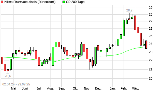 Mit dem Rücksetzer auf 23,60 EUR hat die Hikma Pharmaceuticals-Aktie am 28.03.2025 die 200-Tage-Linie nach unten gekreuzt.