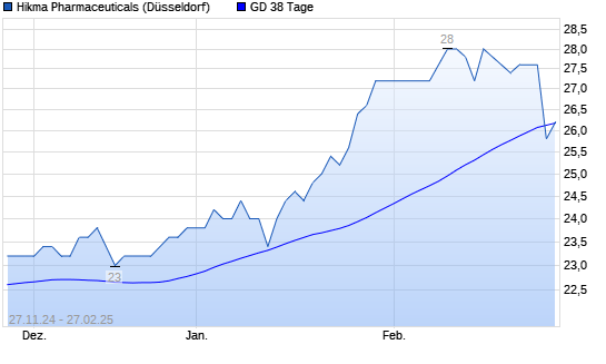Mit dem Rücksetzer auf 26,00 EUR hat die Hikma Pharmaceuticals-Aktie am 26.02.2025 die 38-Tage-Linie nach unten gekreuzt.