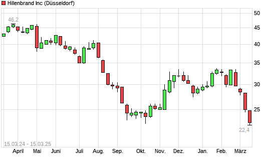 Mit dem Rücksetzer auf 22,60 EUR hat die Hillenbrand-Aktie (ISIN US4315711089) am 14.03.2025 ein neues 3-Jahres-Tief erreicht und damit den Kurs vom 09.10.2024 eingestellt.