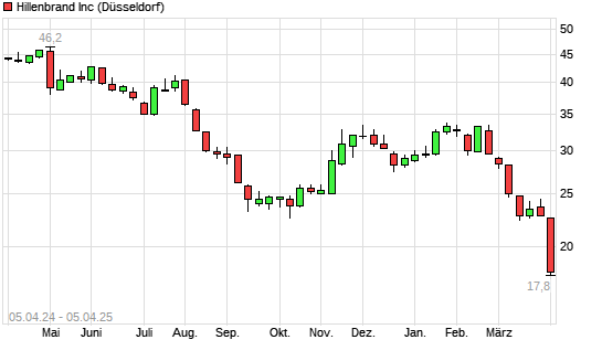 Mit dem Rücksetzer auf 19,10 EUR hat die Hillenbrand-Aktie (ISIN US4315711089) am 04.04.2025 ein neues 3-Jahres-Tief erreicht und damit den Kurs vom 02.04.2025 eingestellt.