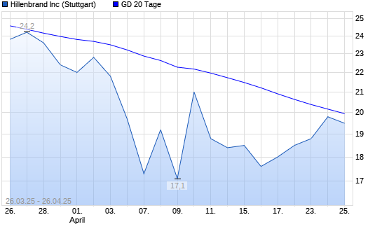 Mit dem Anstieg auf 19,60 EUR hat die Hillenbrand-Aktie am 25.04.2025 die 20-Tage-Linie nach oben gekreuzt.