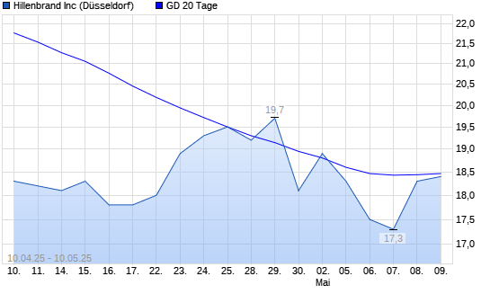 Mit dem Anstieg auf 18,40 EUR hat die Hillenbrand-Aktie am 09.05.2025 die 20-Tage-Linie nach oben gekreuzt.