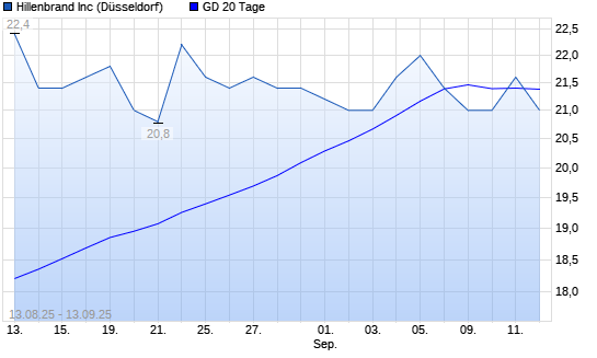 Mit dem Anstieg auf 21,80 EUR hat die Hillenbrand-Aktie am 12.09.2025 die 20-Tage-Linie nach oben gekreuzt.