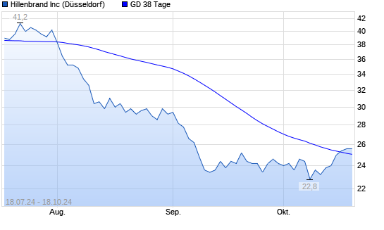 Mit dem Anstieg auf 25,40 EUR hat die Hillenbrand-Aktie am 17.10.2024 die 38-Tage-Linie nach oben gekreuzt.