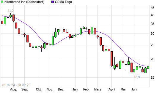 Mit dem Anstieg auf 17,90 EUR hat die Hillenbrand-Aktie am 30.06.2025 die 50-Tage-Linie nach oben gekreuzt.