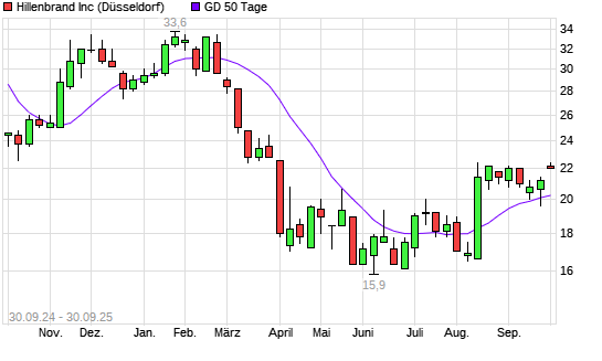 Mit dem Anstieg auf 22,40 EUR hat die Hillenbrand-Aktie am 29.09.2025 die 50-Tage-Linie nach oben gekreuzt.
