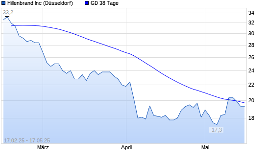 Mit dem Rücksetzer auf 19,00 EUR hat die Hillenbrand-Aktie am 16.05.2025 die 38-Tage-Linie nach unten gekreuzt.