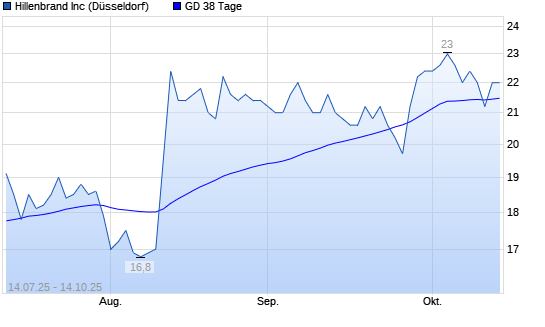 Mit dem Rücksetzer auf 21,40 EUR hat die Hillenbrand-Aktie am 13.10.2025 die 38-Tage-Linie nach unten gekreuzt.