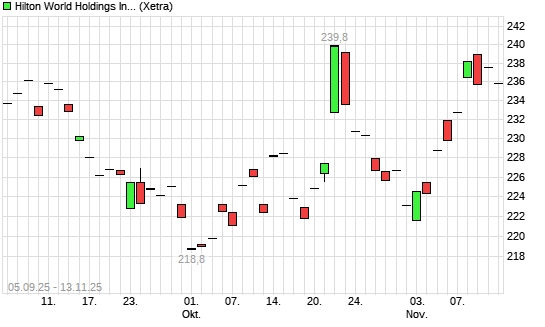 Mit dem Rücksetzer auf 111,25 EUR hat die Hilton-Aktie (ISIN US43300A2033) am 12.11.2025 ein neues 3-Jahres-Tief erreicht und damit den Kurs vom 30.12.2022 eingestellt.
