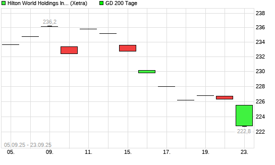 Mit dem Anstieg auf 227,20 EUR hat die Hilton-Aktie am 22.09.2025 die 200-Tage-Linie nach oben gekreuzt.