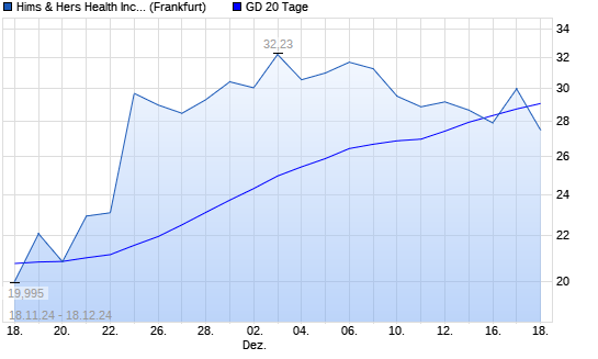Mit dem Anstieg auf 29,98 EUR hat die Hims & Hers Health A-Aktie am 17.12.2024 die 20-Tage-Linie nach oben gekreuzt.