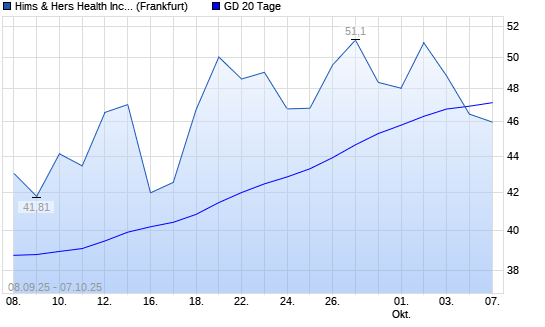 Mit dem Rücksetzer auf 46,47 EUR hat die Hims & Hers Health A-Aktie am 06.10.2025 die 20-Tage-Linie nach unten gekreuzt.