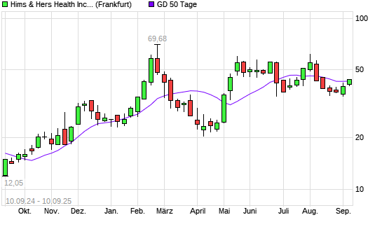 Mit dem Rücksetzer auf 41,81 EUR hat die Hims & Hers Health A-Aktie am 09.09.2025 die 50-Tage-Linie nach unten gekreuzt.