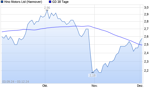 Mit dem Anstieg auf 2,50 EUR hat die Hino Motors-Aktie am 02.12.2024 die 38-Tage-Linie nach oben gekreuzt.
