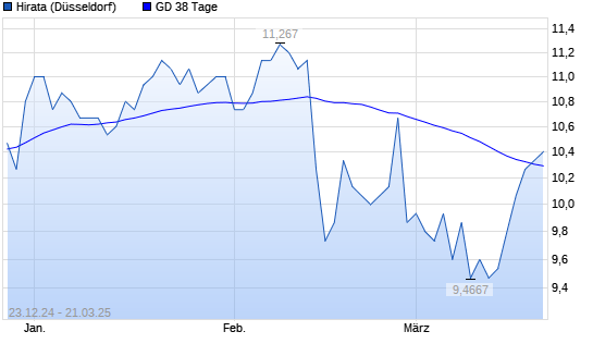 Mit dem Anstieg auf 31,20 EUR hat die Hirata-Aktie am 20.03.2025 die 38-Tage-Linie nach oben gekreuzt.