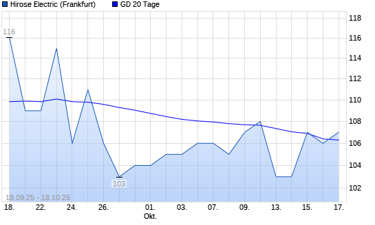 Mit dem Anstieg auf 107,00 EUR hat die Hirose Electric-Aktie am 17.10.2025 die 20-Tage-Linie nach oben gekreuzt.