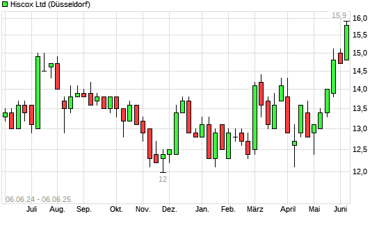 Mit dem Anstieg auf 15,40 EUR hat die Hiscox-Aktie (ISIN BMG4593F1389) am 05.06.2025 ein neues 5-Jahres-Hoch erreicht und damit den Kurs vom 04.06.2025 eingestellt.