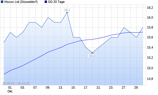 Mit dem Rücksetzer auf 15,70 EUR hat die Hiscox-Aktie am 29.10.2025 die 20-Tage-Linie nach unten gekreuzt.