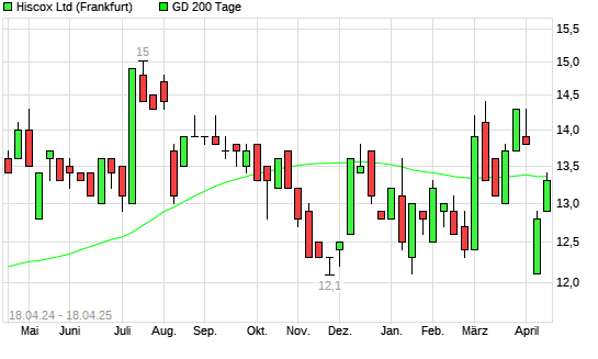 Mit dem Rücksetzer auf 13,30 EUR hat die Hiscox-Aktie am 17.04.2025 die 200-Tage-Linie nach unten gekreuzt.