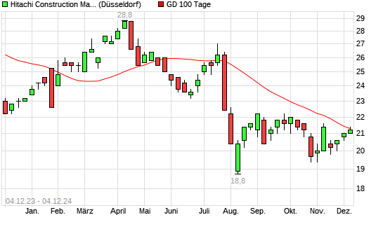 Mit dem Anstieg auf 21,40 EUR hat die Hitachi Construction Machinery-Aktie am 03.12.2024 die 100-Tage-Linie nach oben gekreuzt.