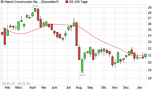 Mit dem Anstieg auf 21,00 EUR hat die Hitachi Construction Machinery-Aktie am 15.01.2025 die 100-Tage-Linie nach oben gekreuzt.