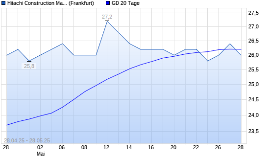 Mit dem Anstieg auf 26,40 EUR hat die Hitachi Construction Machinery-Aktie am 27.05.2025 die 20-Tage-Linie nach oben gekreuzt.