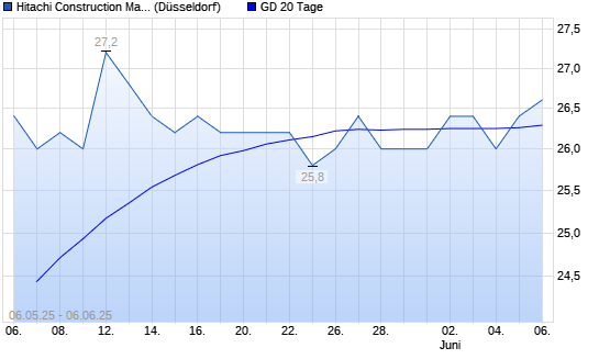 Mit dem Anstieg auf 26,40 EUR hat die Hitachi Construction Machinery-Aktie am 05.06.2025 die 20-Tage-Linie nach oben gekreuzt.